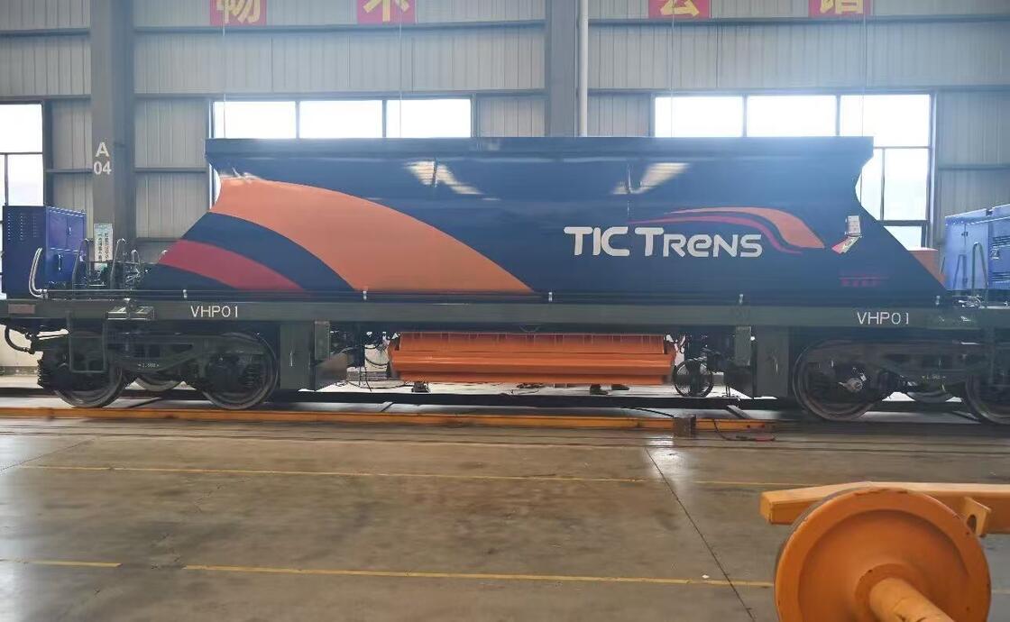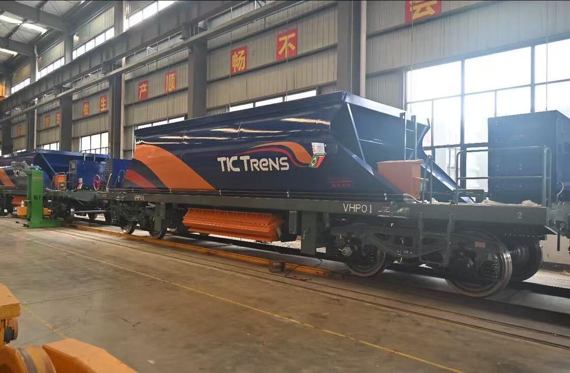This wagon is purpose-built for operation on 1600mm gauge railways in Brazil, and is mainly used for ballast loading, laying and leveling operations during new railway construction and existing line maintenance.