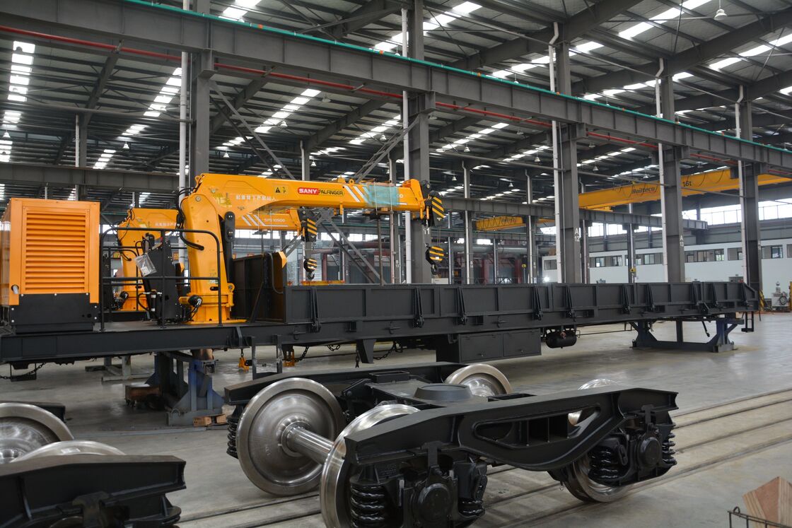 • The crane-equipped flat wagon features an all‑steel welded structure for high strength and durability