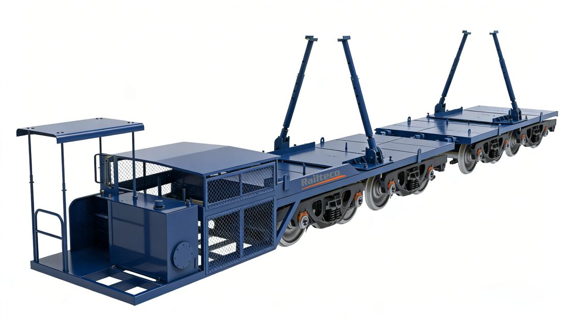 • Application: Transports concrete beams for railway bridges; compatible with 180t bridging machines