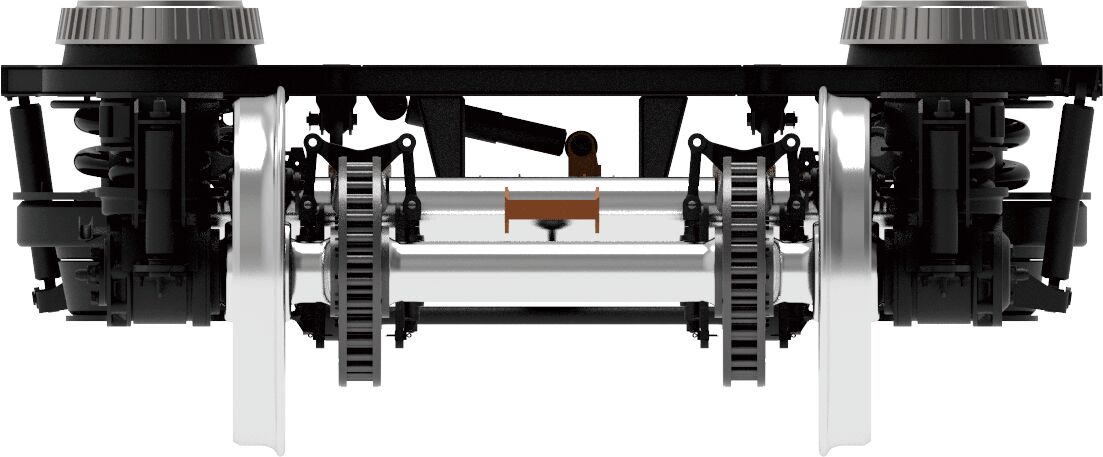 • The primary suspension employs vertical suspension with dual coil springs (inner and outer),and the axle box is located by an elastic articulated trailing‑arm positioning device.