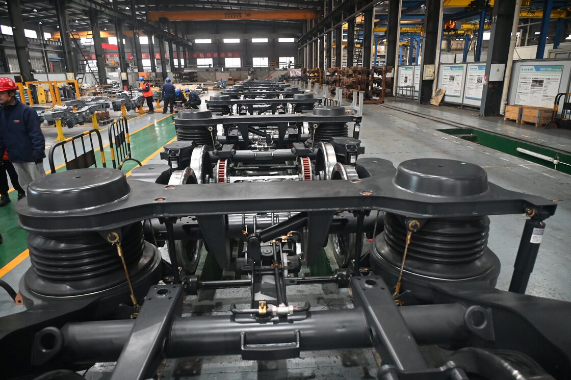 The bogie adopts an H‑type welded frame with U‑shaped side girders, made of S355J2+N steel.