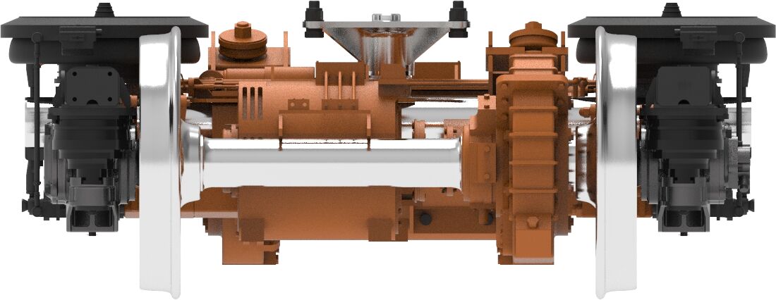 This is a two-axle bogie dedicated for metro vehicles operating on 1435 mm standard‑gauge tracks, available in motor and trailer variants. Both variants feature a compact layout and excellent dynamic performance.