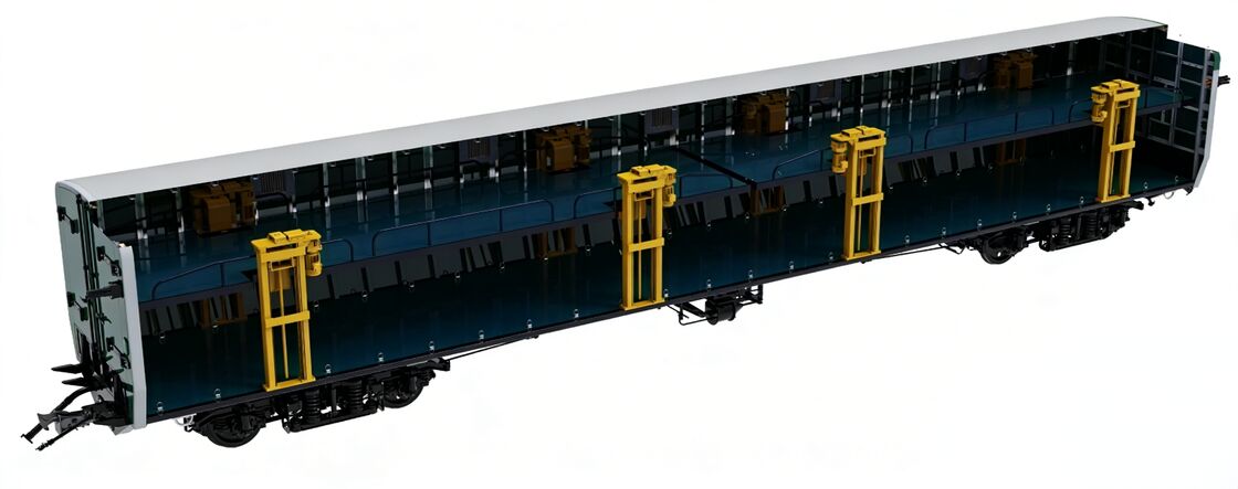 Built with an all-steel welded, fully load-bearing car body, the RTK26 integrates an underframe, side walls, end doors, roof, upper floor, lifting mechanism, and ventilators to form a robust structure. Its dual-layer configuration is optimized for multi-purpose transport: